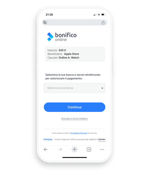 Il nuovo servizio di iniziazione dei pagamenti in Italia, leader in Spagna e Portogallo.